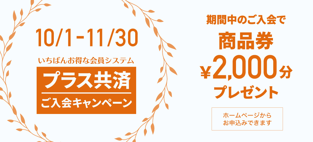 今がご入会のチャンスです。多数の特典を用意した公益社でいちばんお得な会員システム「プラス共済」のご入会キャンペーンを実施します。この機会にぜひご入会ください。お申し込みはクレジットカード決済が使えるWEB申込みが便利です。プラス共済の詳しいご案内はこちらでご確認ください。
